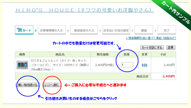 | ●「カートへ入れる」ボタンをクリックしますとショッピングカートの中に入ります。 | |||